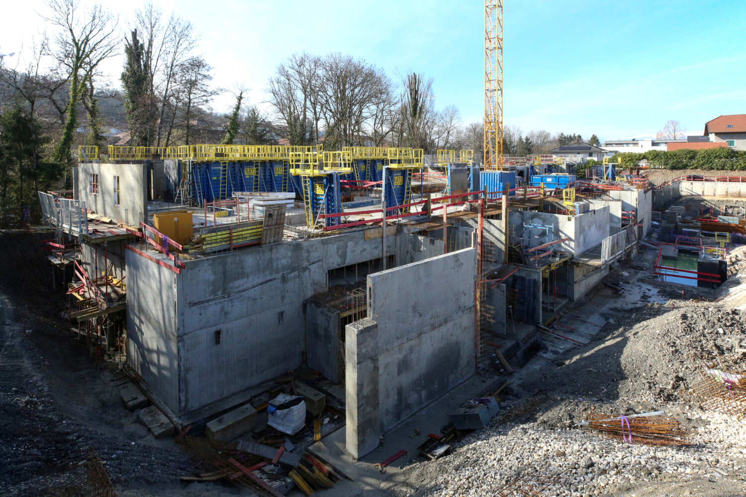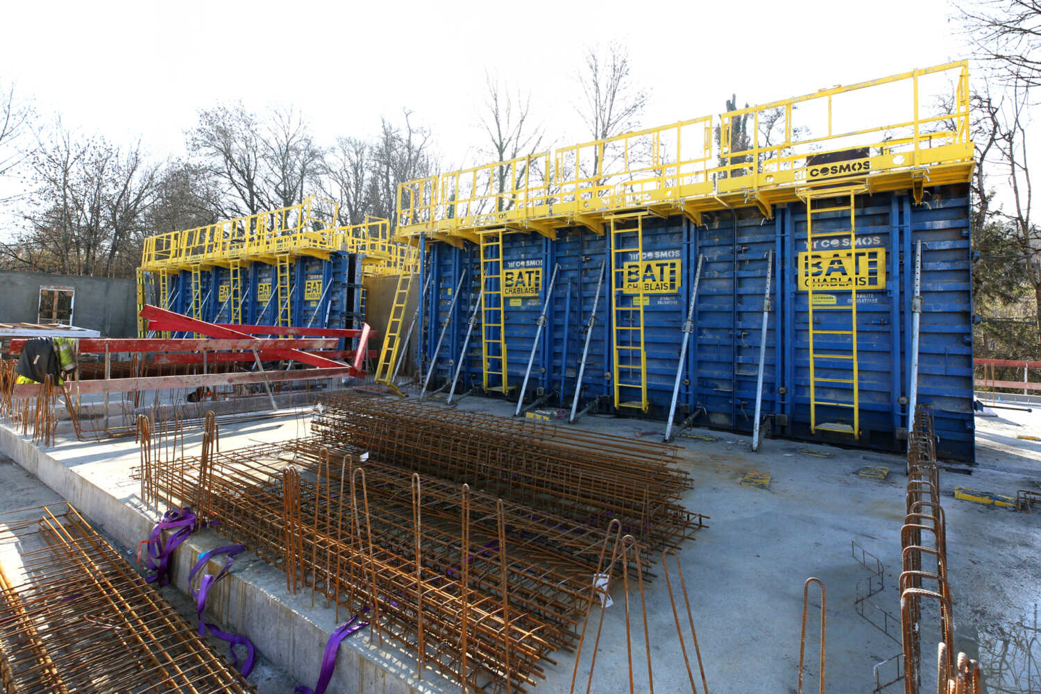 Construction d’un mur de soutènement en béton matricé.